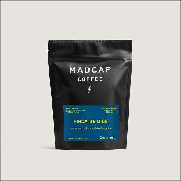 2025 marks the 16th year Madcap has partnered with husband and wife duo Ellen and Stuart Prentice of Finca de Dios, otherwise known as Farm of the Gods. Ellen inherited the farm from her father in the early 1970’s, falling in love with the coffee growing process and planting more and more on the land. Today, with the help of their daughter Ashley, the Prentice family oversee a 19-hectare farm encompassing a multitude of microclimates. While Ellen handles coffee growing with her studies in agronomy, Stuart continues to innovate and make upgrades to the farm, and Ashley focuses on selling the green coffee while raising her young children.