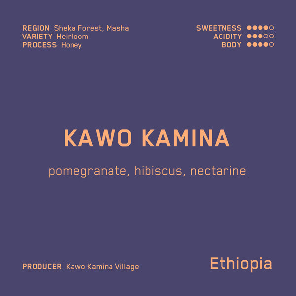 In southwest Ethiopia bordering Bench Maji and Gambela lies the Sheka zone. Sheka is covered in lush forest, with locals referring to the area as Heaven on Earth. Coffee plants grow alongside and in harmony with the rich biodiversity in Sheka at the Kawo Kamina farm; thriving tree cover provides natural shade for the coffee trees below; many farmers also keep bees in the area, further enriching the forest and farms.