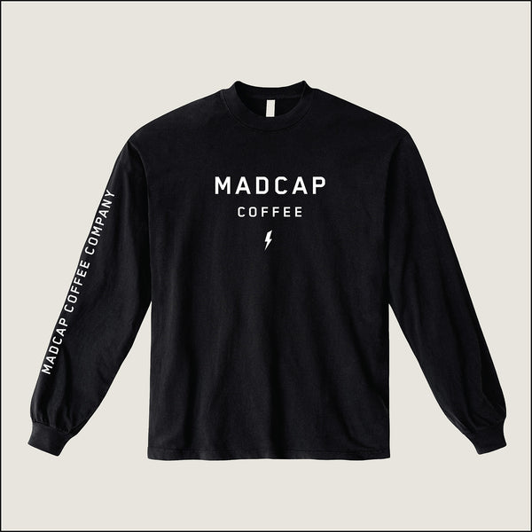 The Madcap classic stacked logo in a longsleeve tee format. Includes the name in print on the sleeve, so if you're rockin the layers, you can still rep the Madcap.